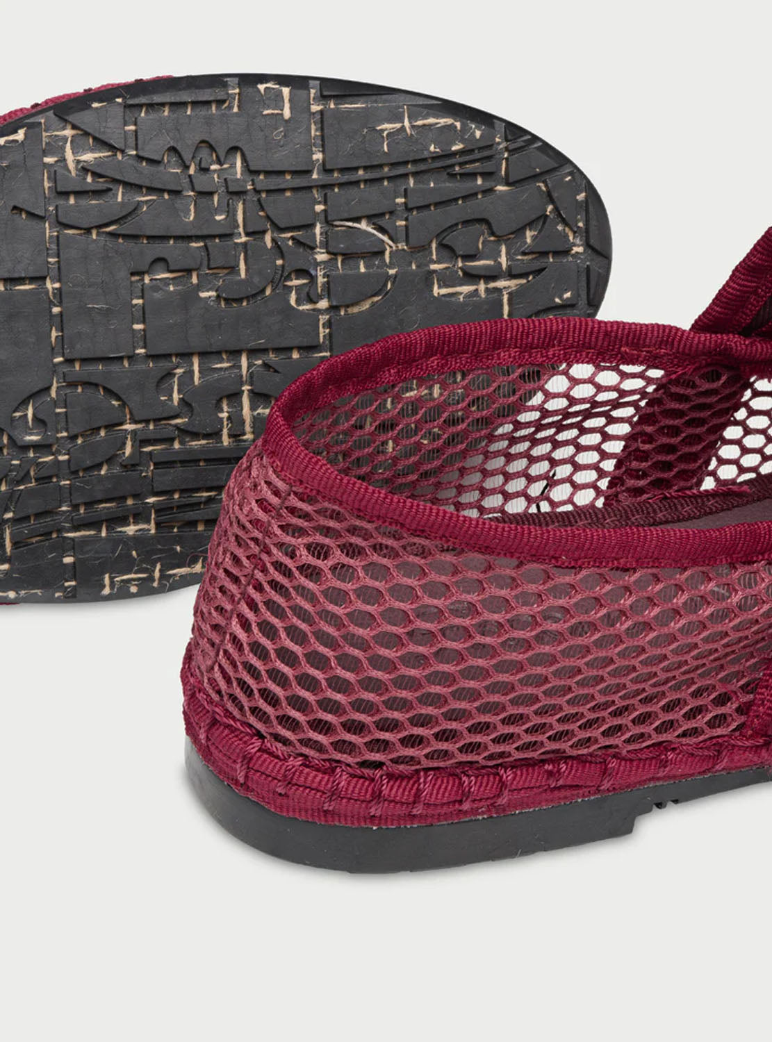 - Bailarina de malla en pico en color burdeos claro con ribete burdeos.
