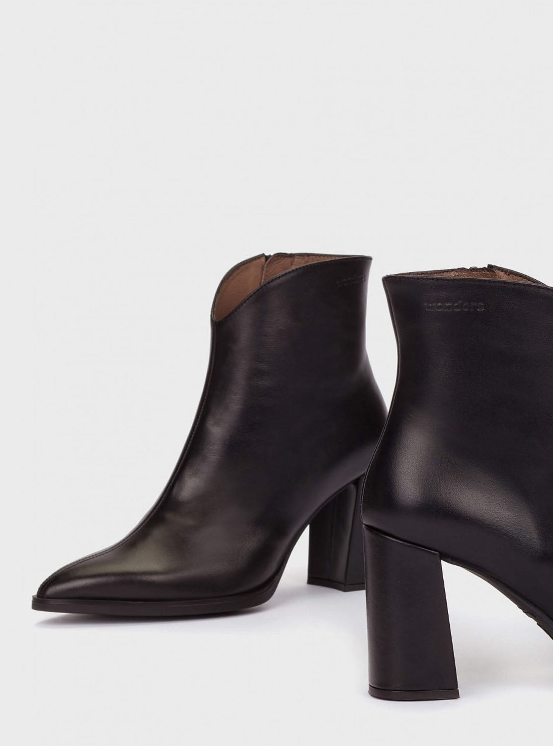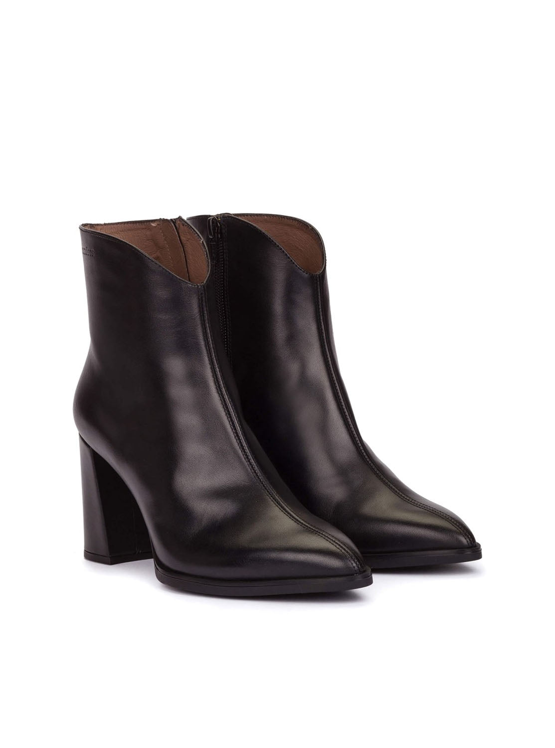 Botines AURORA 30 fabricadas en piel lisa negra. El corte minimalista se realza con una costura central que recorre el empeine y se funde con el escote en V, estilizando la silueta. Incorpora cremallera lateral interior para facilitar el calce y tacón ancho de altura media-alta, revestido a tono. Su suela de goma flexible aportan un extra de comodidad, combinado con la plantilla interior de MemoryGel que asegura una pisada amortiguada.