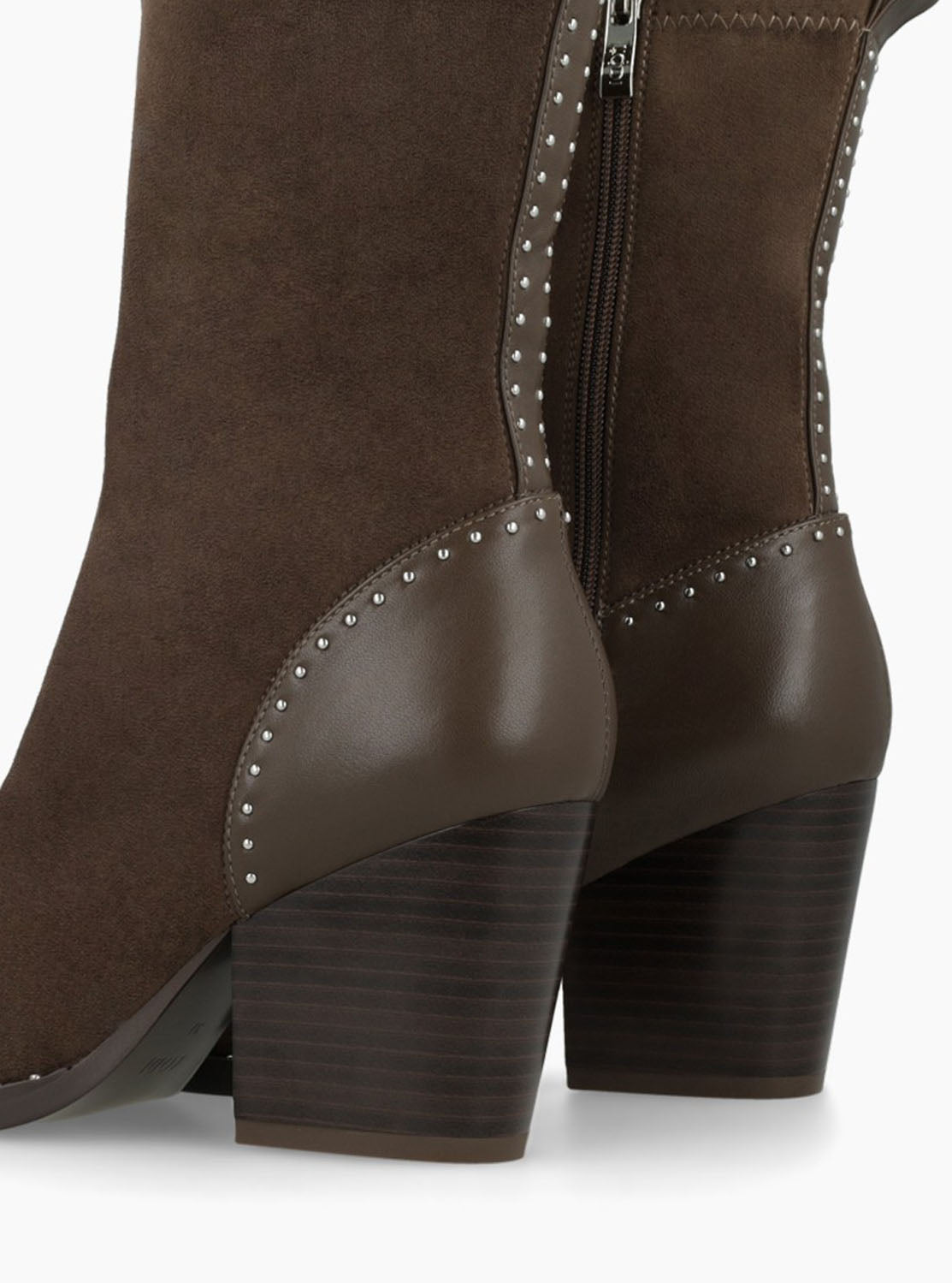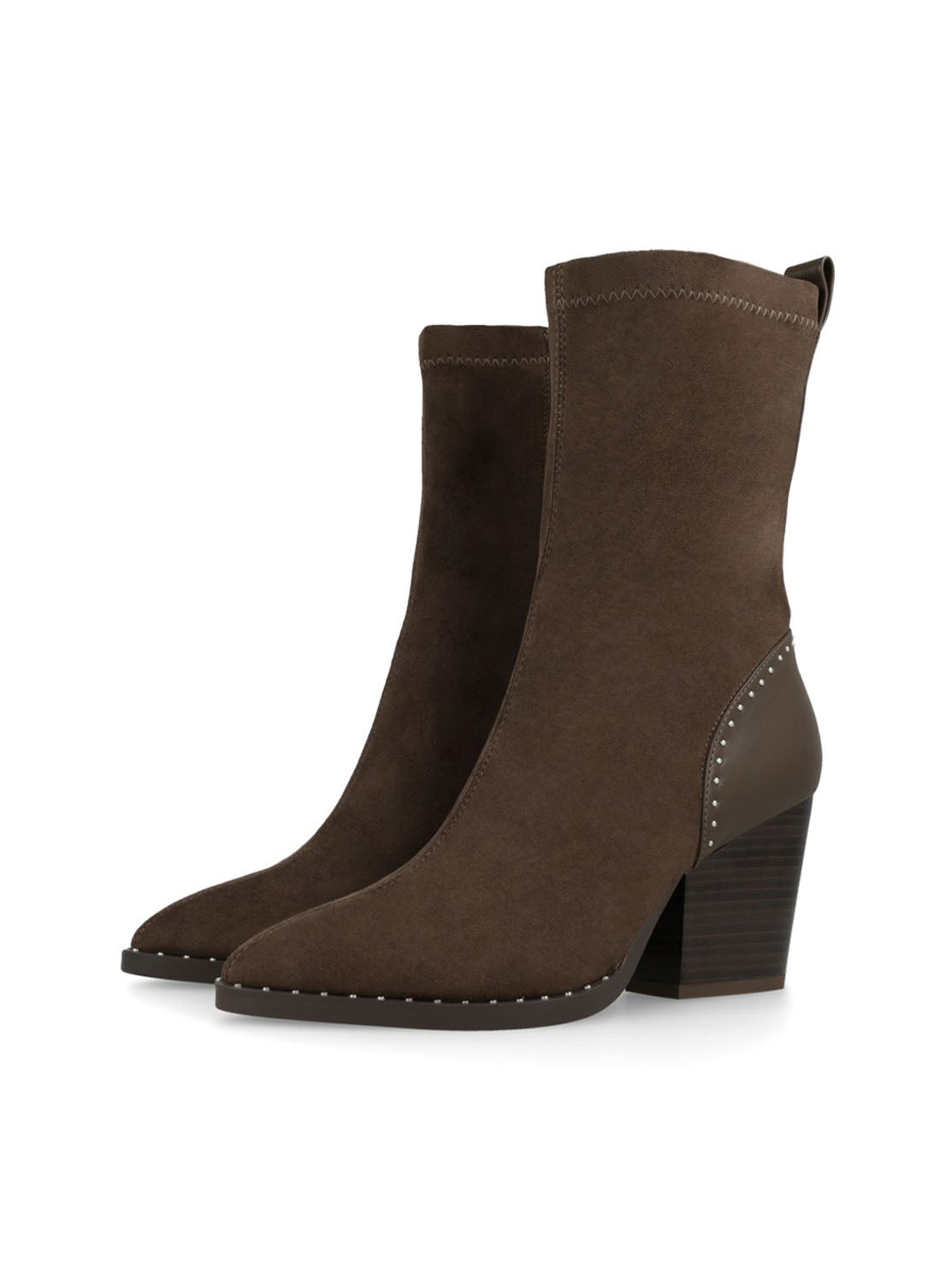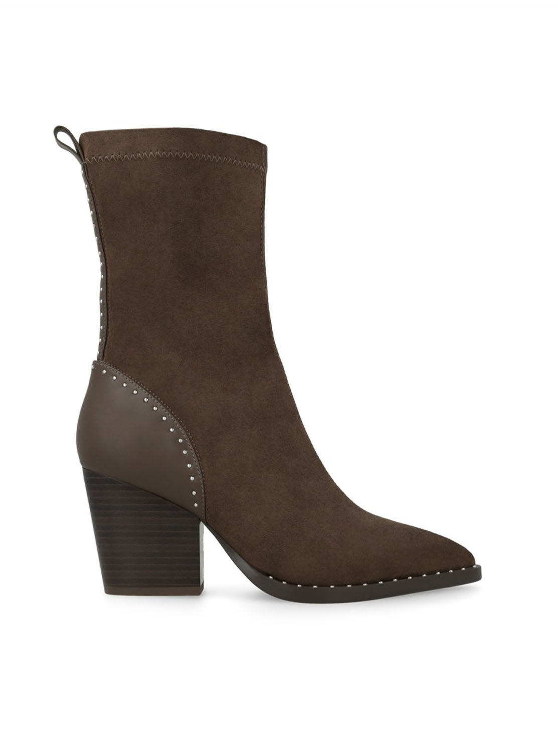 Botines de mujer A-CEI5732 de LODI acabado antelina. Diseño estilo cowboy con detalle de remaches metálicos. Un diseño confeccionado con tacón de 8 cm de altura. Cierre en lateral interior mediante cremallera. Punta fina. Interior en tejido y planta en piel. Incluye planta new gel para mayor comodidad en todas tus pisadas.