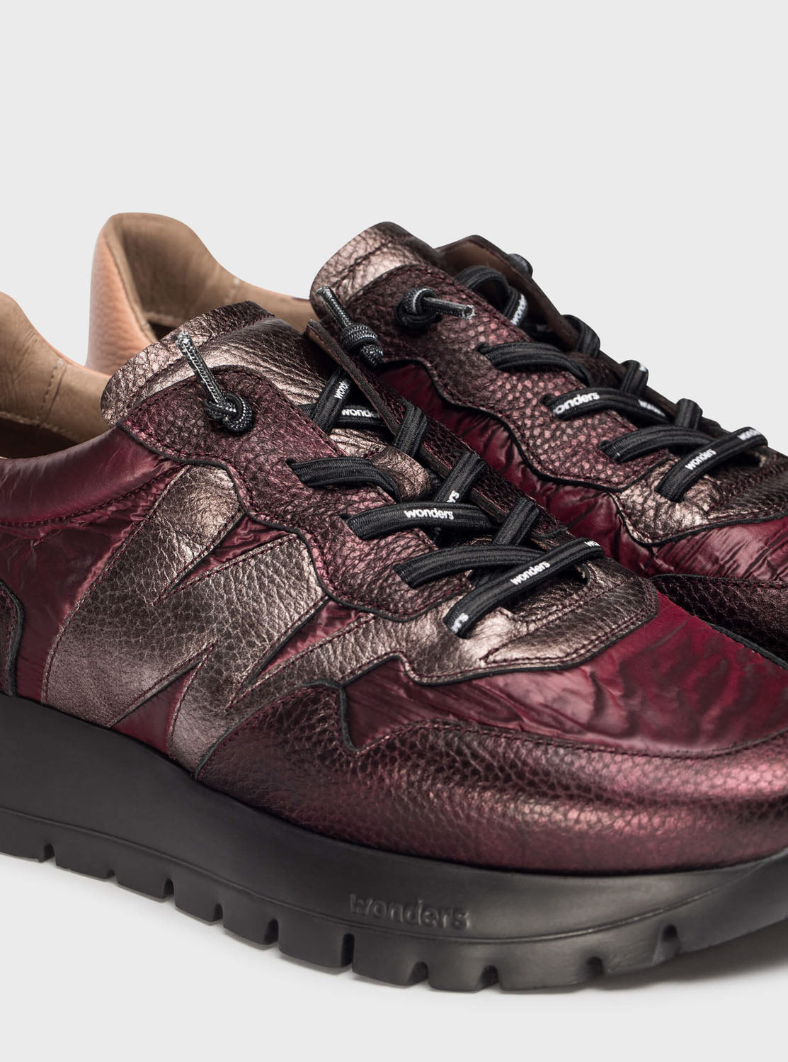 Deportivo "ODISEI" piel metalizada combi burdeos